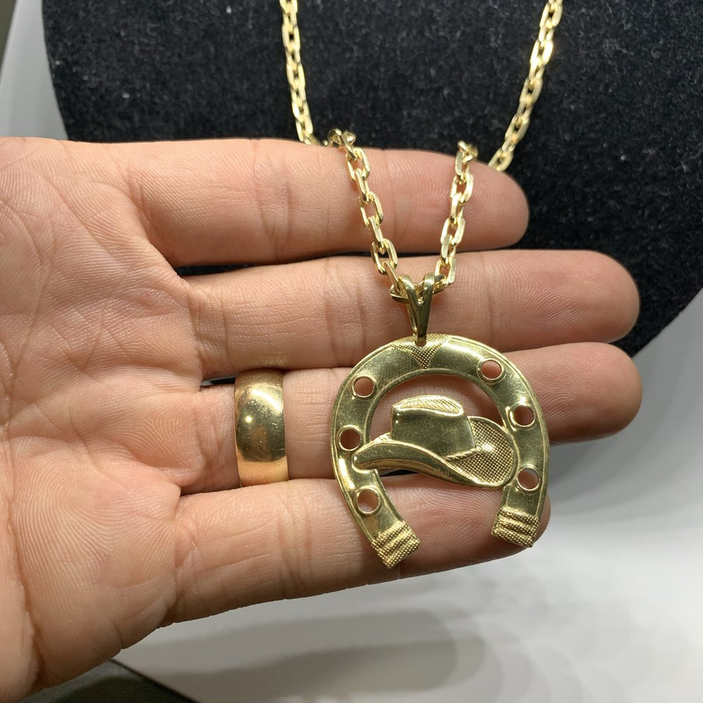 Pingente de Moeda Antiga Ferradura Chapéu Pequeno Bordado