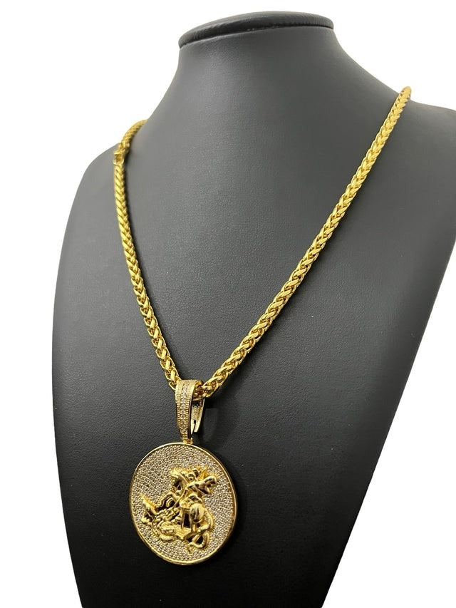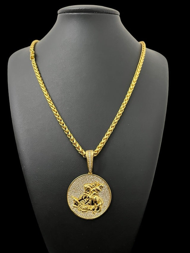 KIT CORDÃO PERUANO 5MM + PINGENTE SAO JORGE BANHADO A OURO