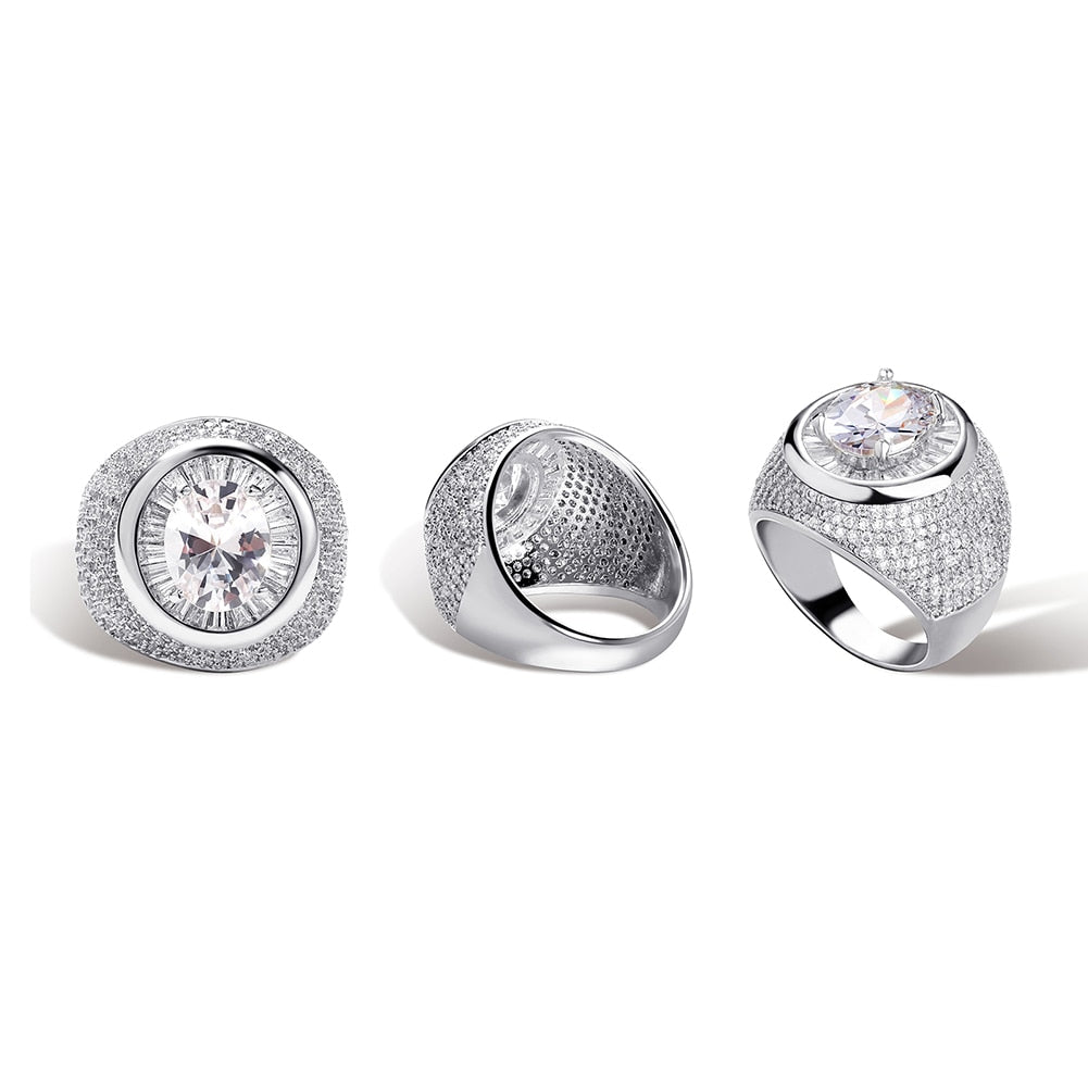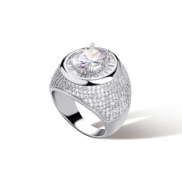Anel Cravejado de Zirconia Cubica com Pedra Grande central estilo ICE CHAINS Street Wear.