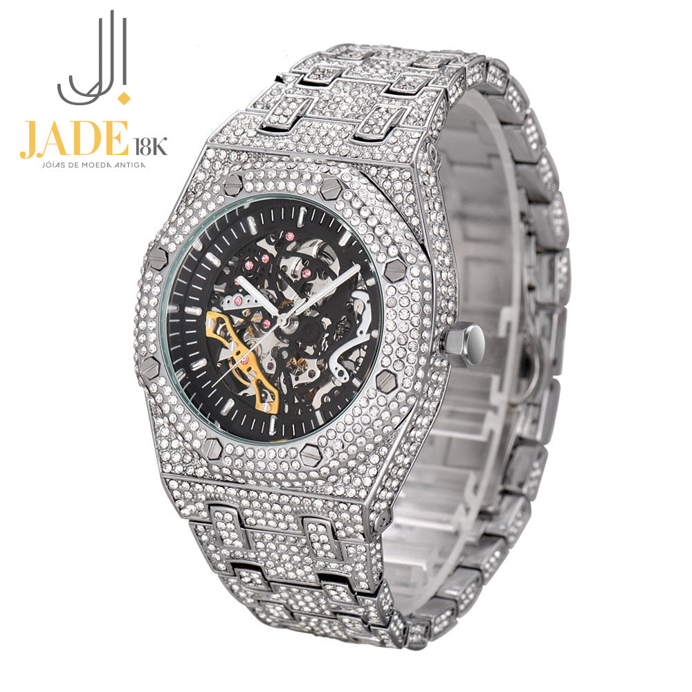 Relógio Mechanical Luxury Estilo Ice Chain Cravejado De Zircônia Cubica